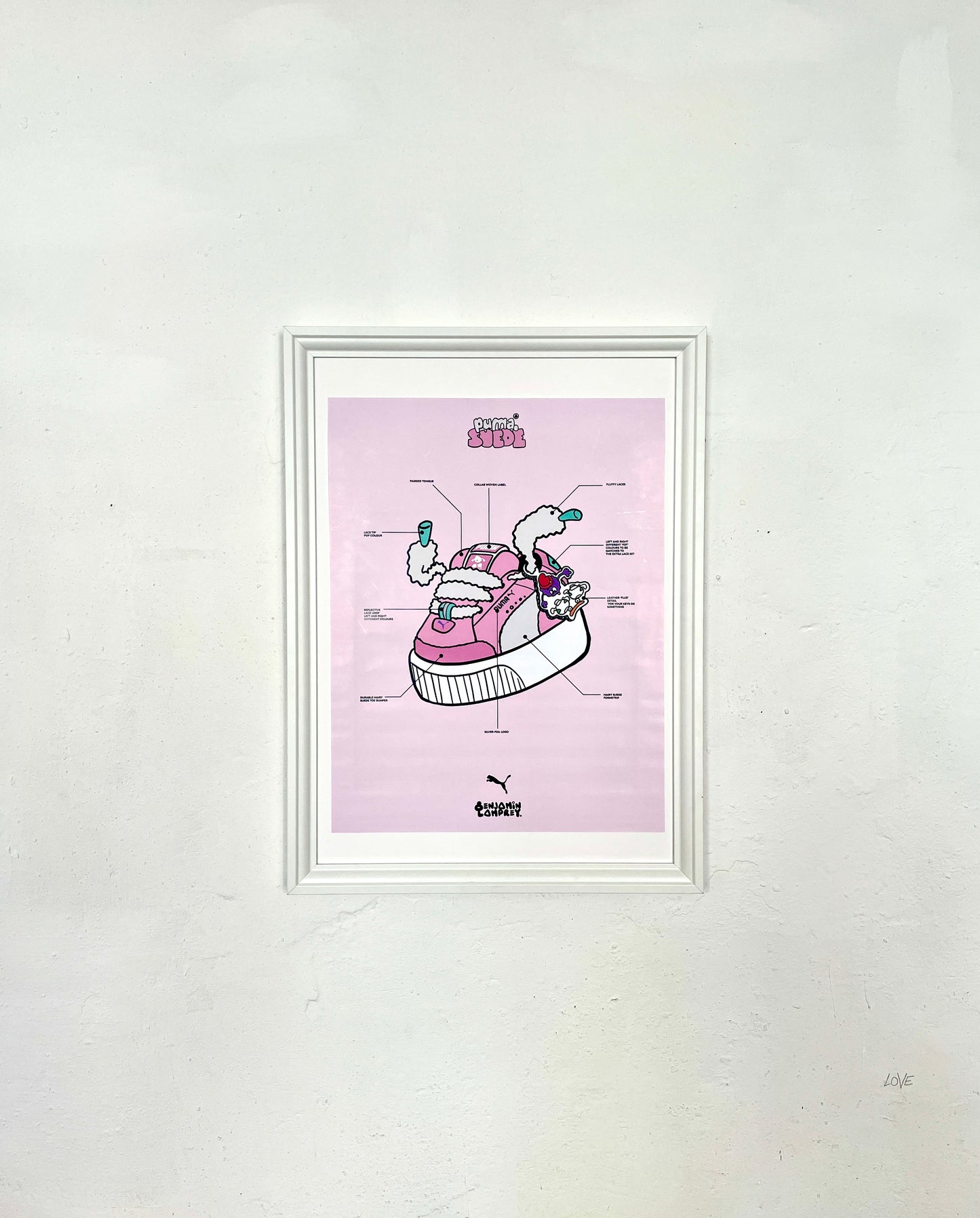 Describing all the design details of the Sneaker, drawn in the Artists unique style